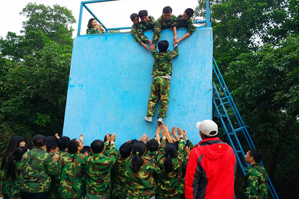 時間。大家一致推選營銷副總擔(dān)任總司令,并制定出在1個小時內(nèi)完成的目標(biāo)。項目是要求每位成員都要翻越4米多高的光滑墻面,且不能